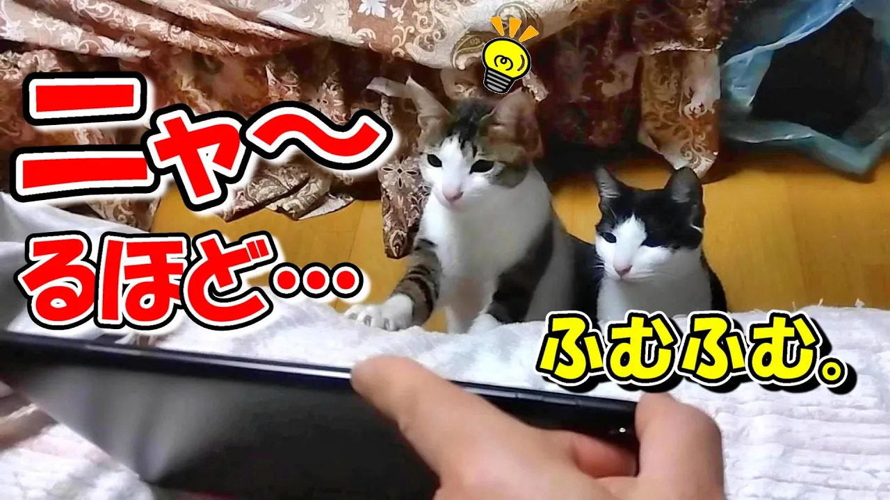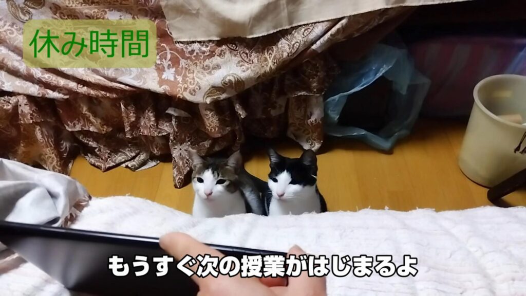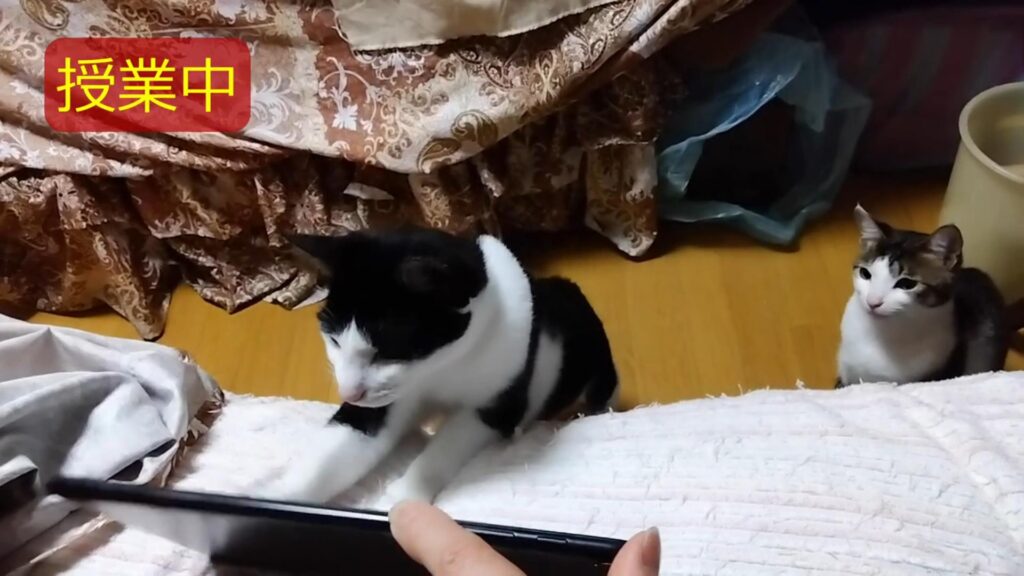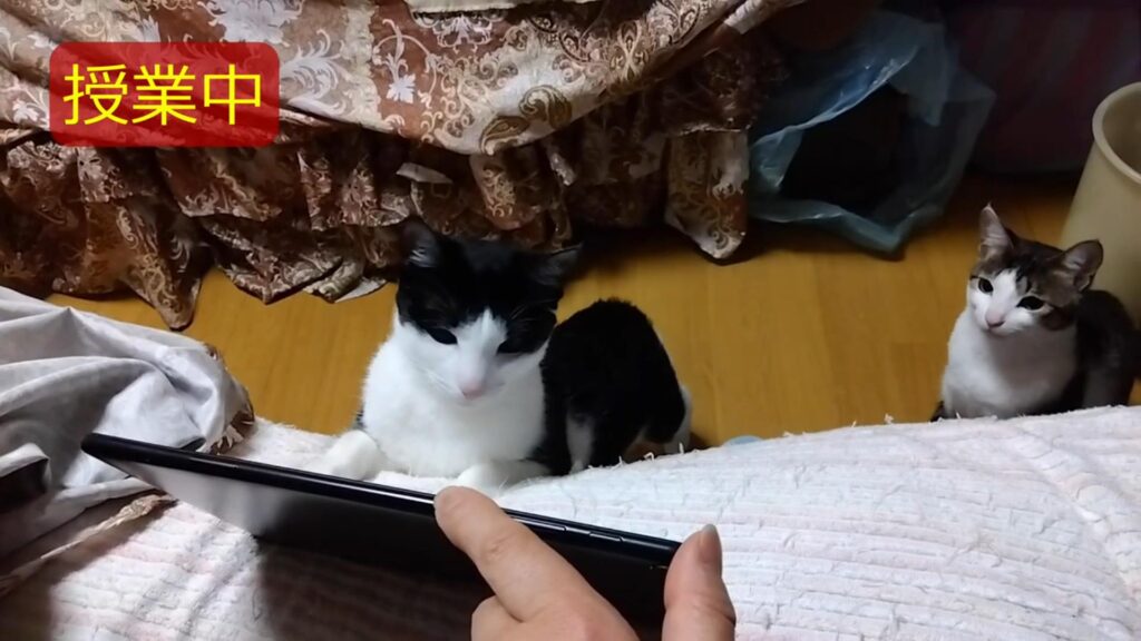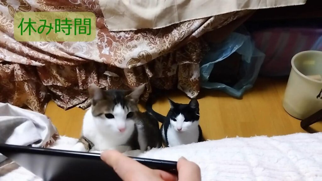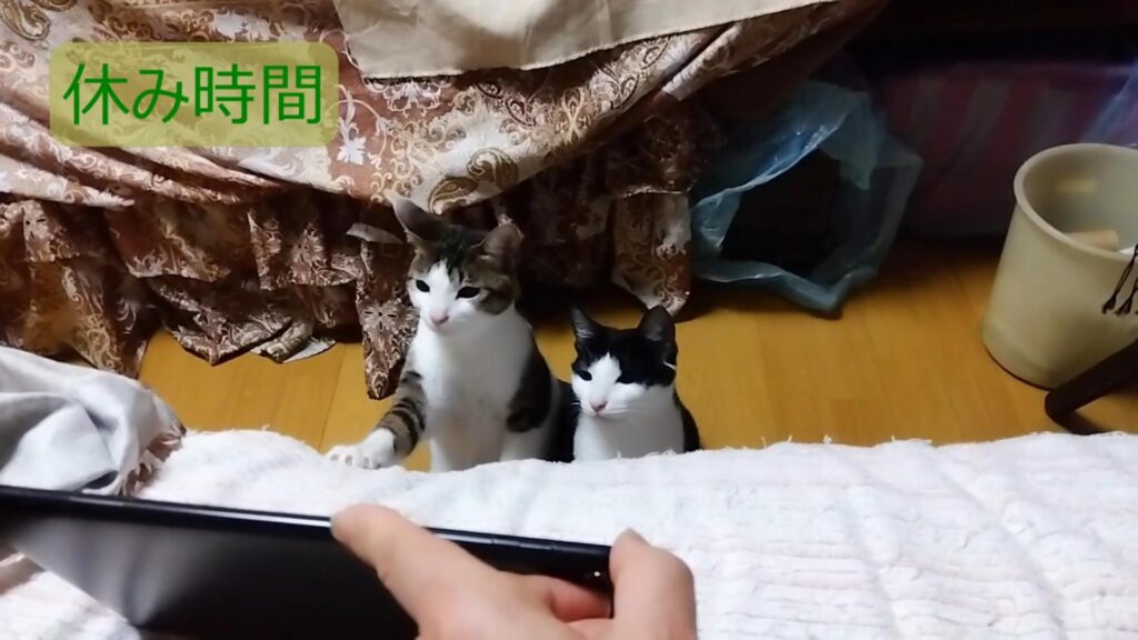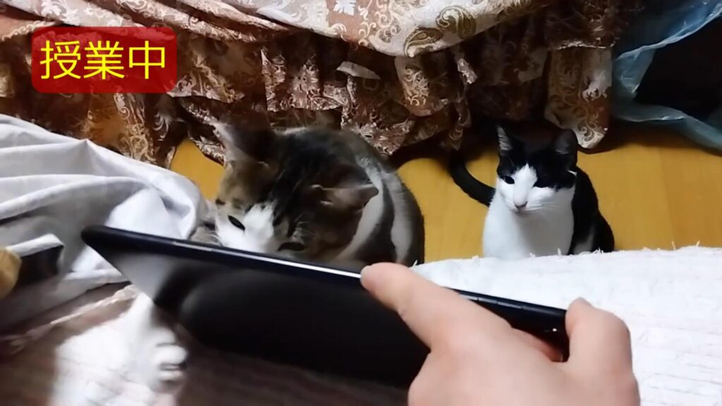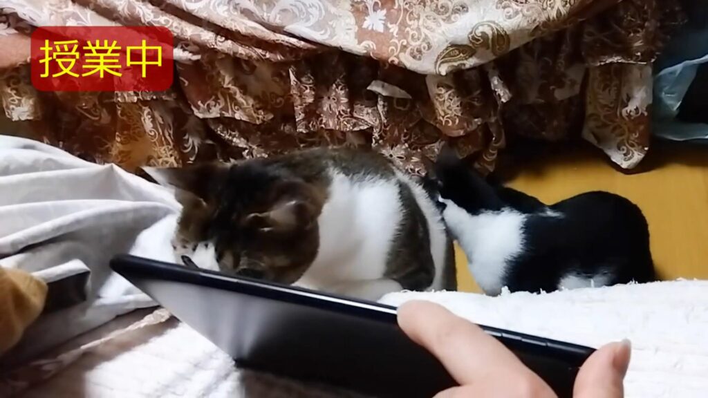 野鳥の動画を視聴中の二匹。